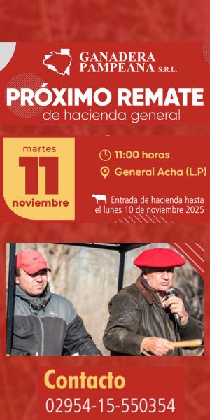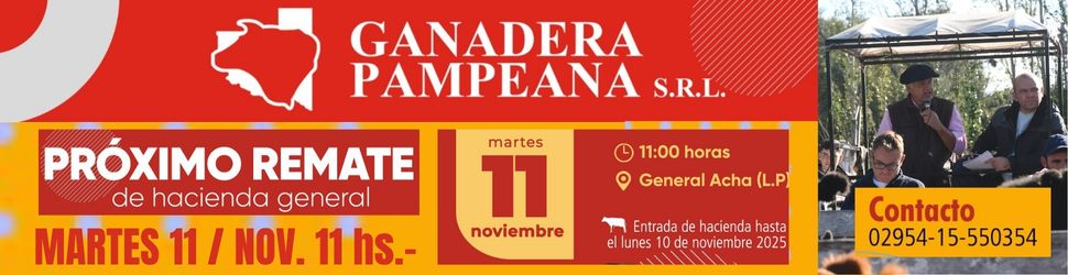 ![]() | Ganaderos de General Acha S.A. | General Acha | Próximo Remate Feria el miércoles 19 de noviembre de 2025 | miércoles 19 noviembre, 2025 |