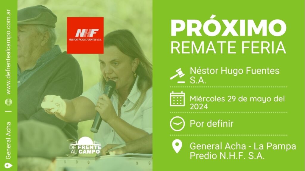 Néstor Hugo Fuentes S.A. te invita a su próximo Remate Feria de Ganado Vacuno que se llevará a cabo el miércoles 29 de mayo del 2024 en General Acha, La Pampa.