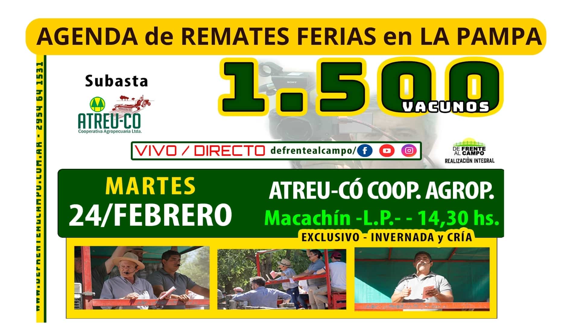 ATREU-CO, cooperativa agropecuaria con fuerte presencia en Macachín, continúa fortaleciendo su propuesta de remates ganaderos, ofreciendo respaldo institucional, organización y cercanía con el productor. Para informes y consultas, los interesados pueden comunicarse telefónicamente o vía correo electrónico.