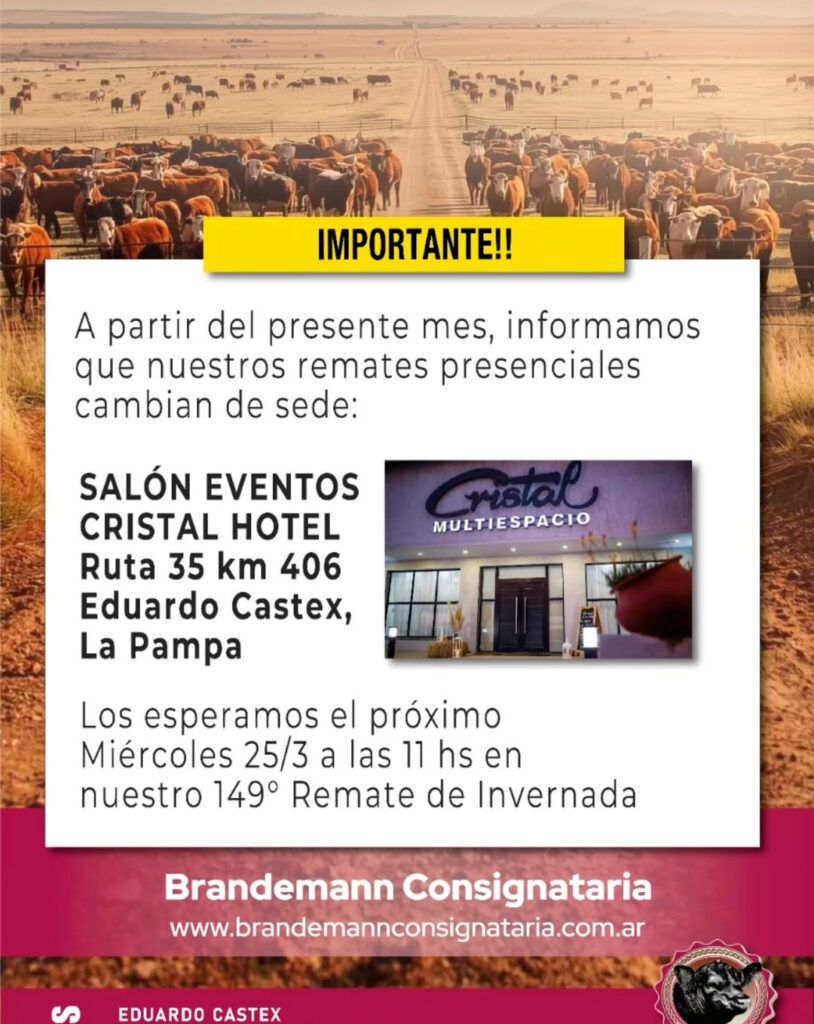 Inicio » Agro Eventos » Brandemann Consignataria | Eduardo Castex | Próximo Remate Feria el miércoles 25 de marzo de 2026