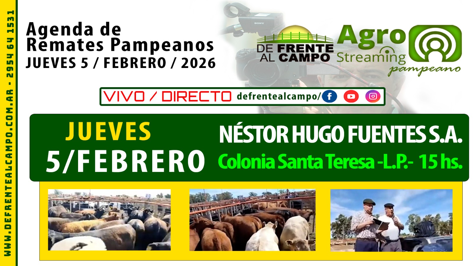 El remate feria de Néstor Hugo Fuentes S.A. en Colonia Santa Teresa se presenta como una instancia clave para la comercialización de hacienda en el centro pampeano, reuniendo productores de la región en un contexto de mercado activo y dinámico.