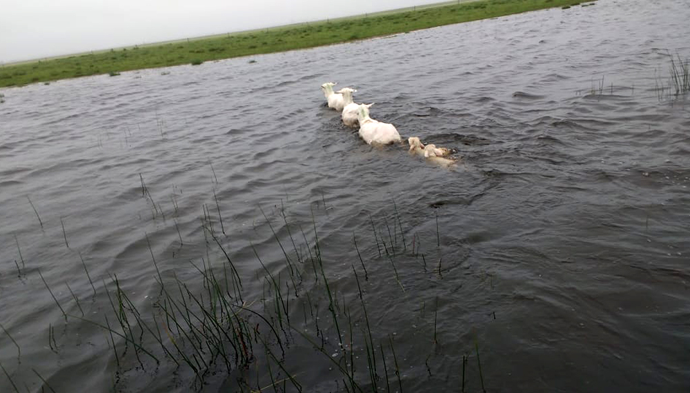 En General Alvear, en el centro de la provincia, cayeron 150 milímetros y los animales quedaron en medio de una inundación. La futura licenciada en Genética, Bego Lóizaga, mostró imágenes impactantes.