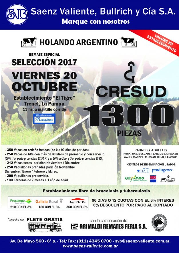 El pasado 20 de octubre se realizó un remate de 1.300 cabezas, que incluyó 350 vacas en ordeñe frescas, 250 vacas en ordeñe de alta producción, 212 vacas secas, 250 vaquillonas preñadas, 200 vaquillonas y 10 terneras. De esta forma, en el último año Cresud fue liquidando parte de su rodeo lechero, que hace un año contaba con 2.309 cabezas.