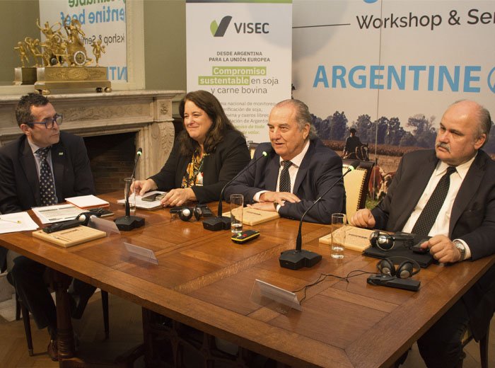 La cadena de ganados y carnes, nucleados en el Instituto de Promoción de la Carne Vacuna Argentina (IPCVA), presentó el lunes 3 de junio, en la residencia de la Embajada argentina ante la Unión Europa en Bruselas, un sistema que permite cumplir la exigencia de la UE integrado a la plataforma VISEC (Visión Sectorial Gran Chaco). Esta herramienta innovadora, desarrollada para asegurar la trazabilidad y certificación de productos libres de deforestación y del que participa toda la cadena de ganado bovino, garantiza que los embarques que lleguen a los mercados europeos provendrán de establecimientos ganaderos no deforestados, en cumplimiento con el Reglamento (UE) 2023/1115 (EUDR) de la Unión Europea, aprobado a mediados de 2023 y que entrará en vigencia el 30 de diciembre de 2024.