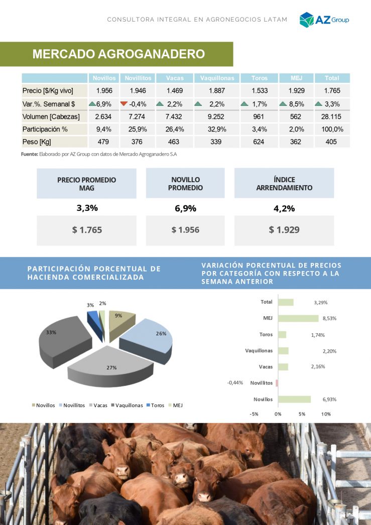 Leve recupero en el mercado. Semana donde destaca el volumen comercializado, alcanzando las 28.000 cabezas. Nivel que no se alcanzaba desde principios de junio de 2024.