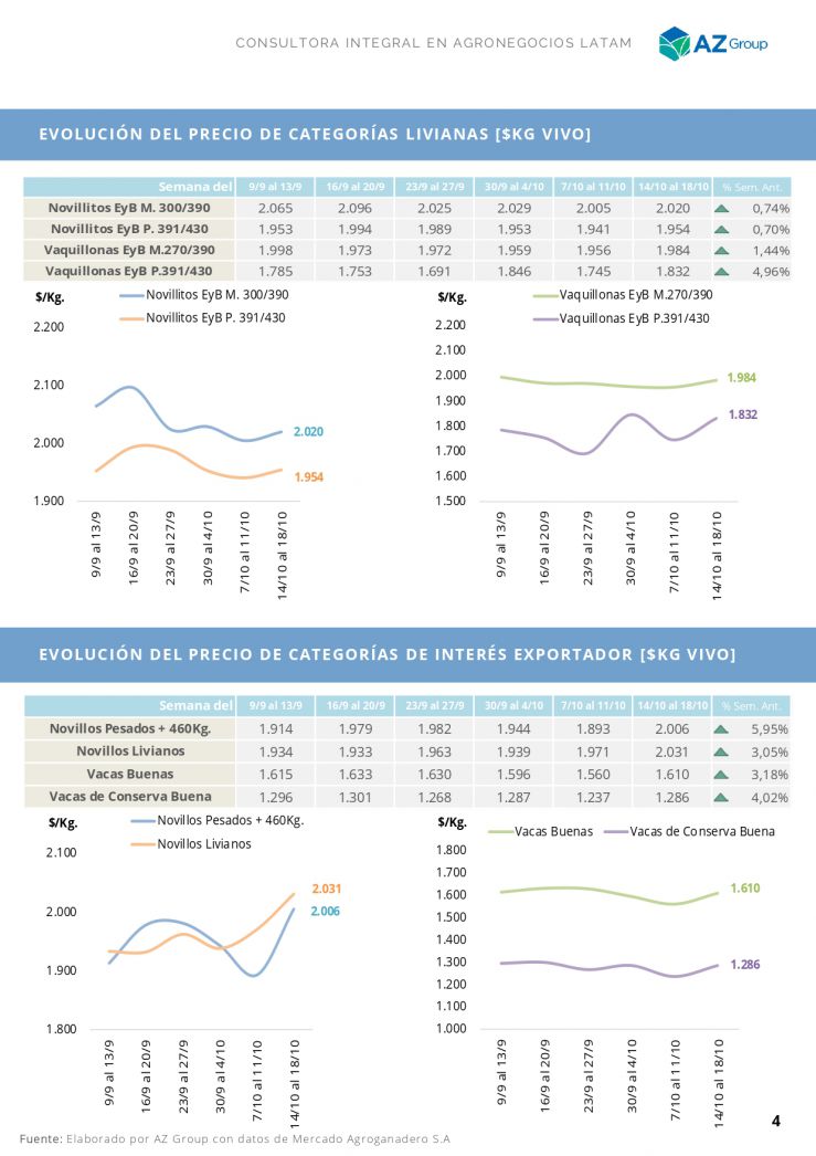 Los novillitos con un aumento del 1% alcanzaron en el día de hoy máximos de $/kg 2.130. Las vaquillonas aumentaron de igual manera, con máximos en $/kg 2.150.