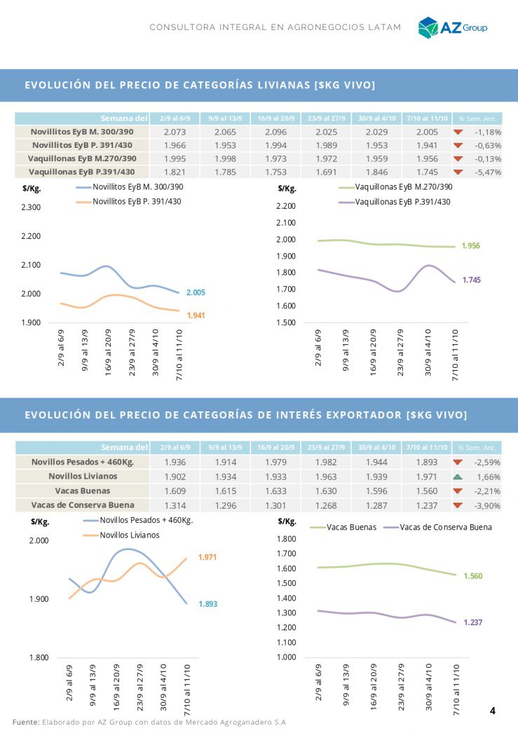 Ambas categorías rondan en máximos de $/kg 1.900-2.000. Las vacas y novillos pesados bajan sus máximos a $/kg 1.900 y 2.100 respectivamente.