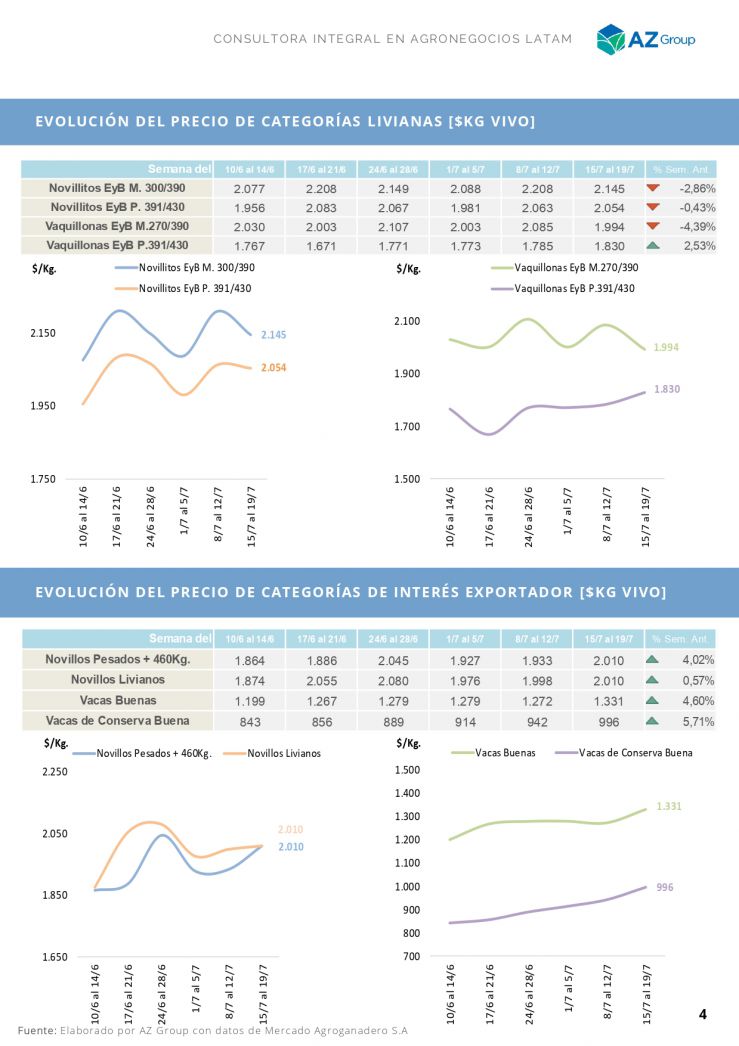 Las categorías con destino a exportación aumentaron sus precios promedios con respecto a la semana anterior, tocando hoy los $/kg 2.200 los novillos de +460kg y $/kg 2.200 las vacas buenas.