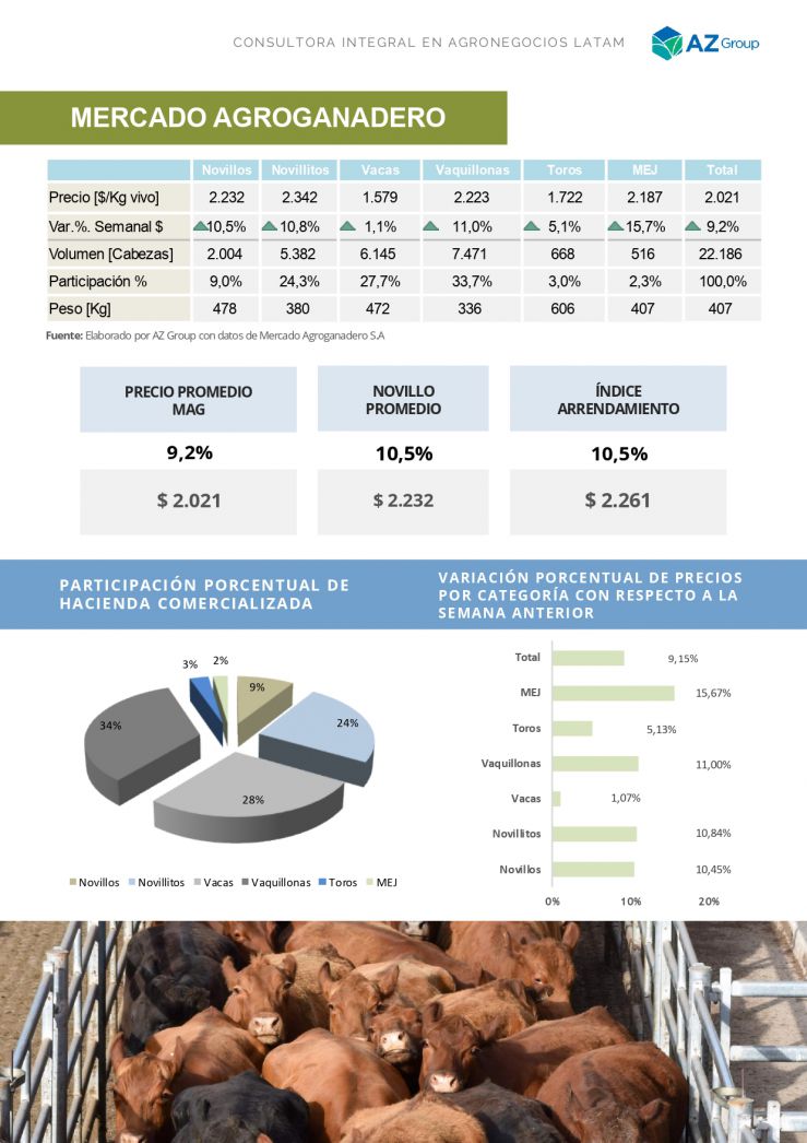 Se reactivó el mercado. Los precios no encuentran techo y no paran de subir semana a semana. Los novillitos de 300/390kg. lograron máximos de $/kg 2.640, un +9% vs la semana anterior.