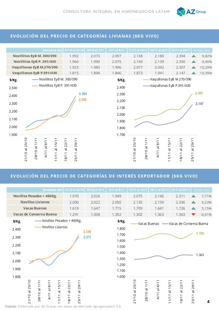 Los de mayor kilaje, entre $/kg 2.500 y 2.550. Variaciones de +9% y +7% respectivamente. Récords semanales y mensuales.