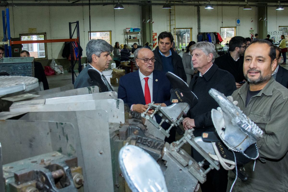 Mendiguren y Ziliotto recorrieron la pyme Calzatex, que se dedica al diseño y fabricación de calzado. La firma inició su producción en La Pampa durante este año en un predio que adquirieron hace 10 meses a partir de una convocatoria pública de proyectos para su radicación en la ex planta “Calzar”, ubicada en el Parque Industrial de Santa Rosa, recuperada por el Gobierno provincial, que en el día de ayer cumplió el hito histórico de realizar su primer despacho de 2.000 pares de calzado a Buenos Aires. Calzatex, que está tramitando financiamiento de CreAr, inició su primera etapa de producción pampeana y está realizando inversiones para la puesta en operación de la totalidad del inmueble. Además, están finalizando una línea de inyectado y proyectan incorporar más maquinaria.